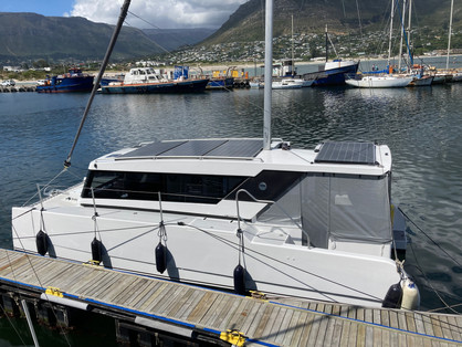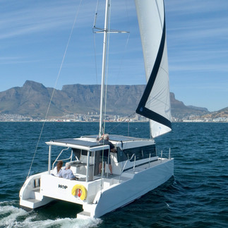 As designers and builders, we knew that we would be a little biased, looking for the positives and overlooking any negatives. So we invited Richard Chase, a colleague from Hout Bay Yacht Club, who owns a 42 foot catamaran. He's an avid sailor and a helicopter pilot. I mention the latter to make the point that Richard is a great fan of precision and control! He loves the boat and felt completely at home on the helm throughout the spirited conditions. Richard made the comment that HopYacht's upwind performance compared favourably to many of the new generation larger cruising catamarans and despite being a smaller boat with a one-sail rig, we averaged 4-5 knots, close hauled.